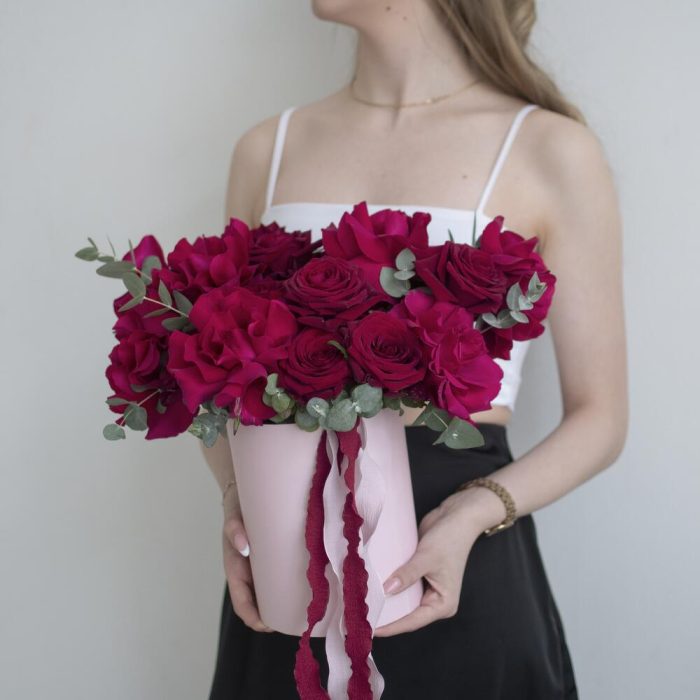 “В твоих глазах”: нежная шляпная коробка с французскими розами