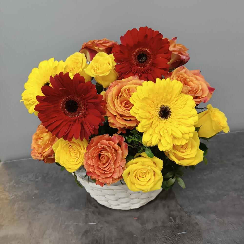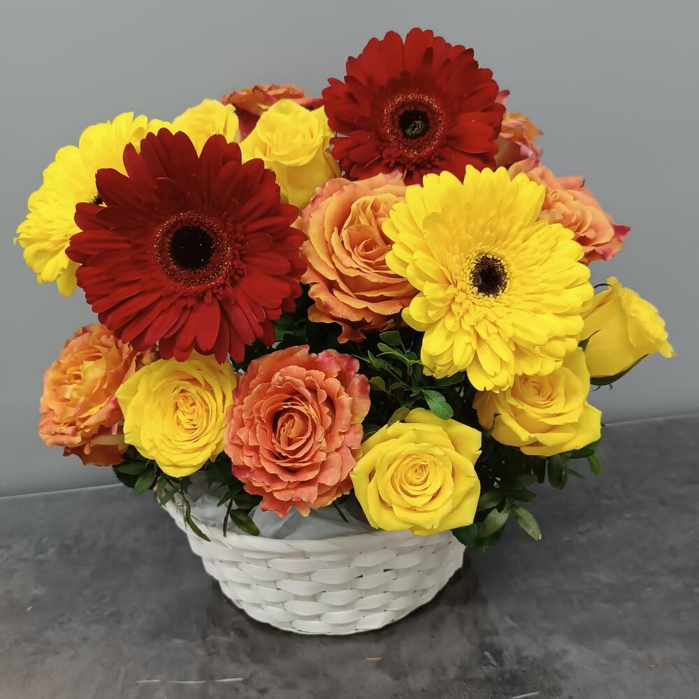 Гвоздики, Герберы, Кустовые розы, Лизиантусы, Пионовидные розы, Розы