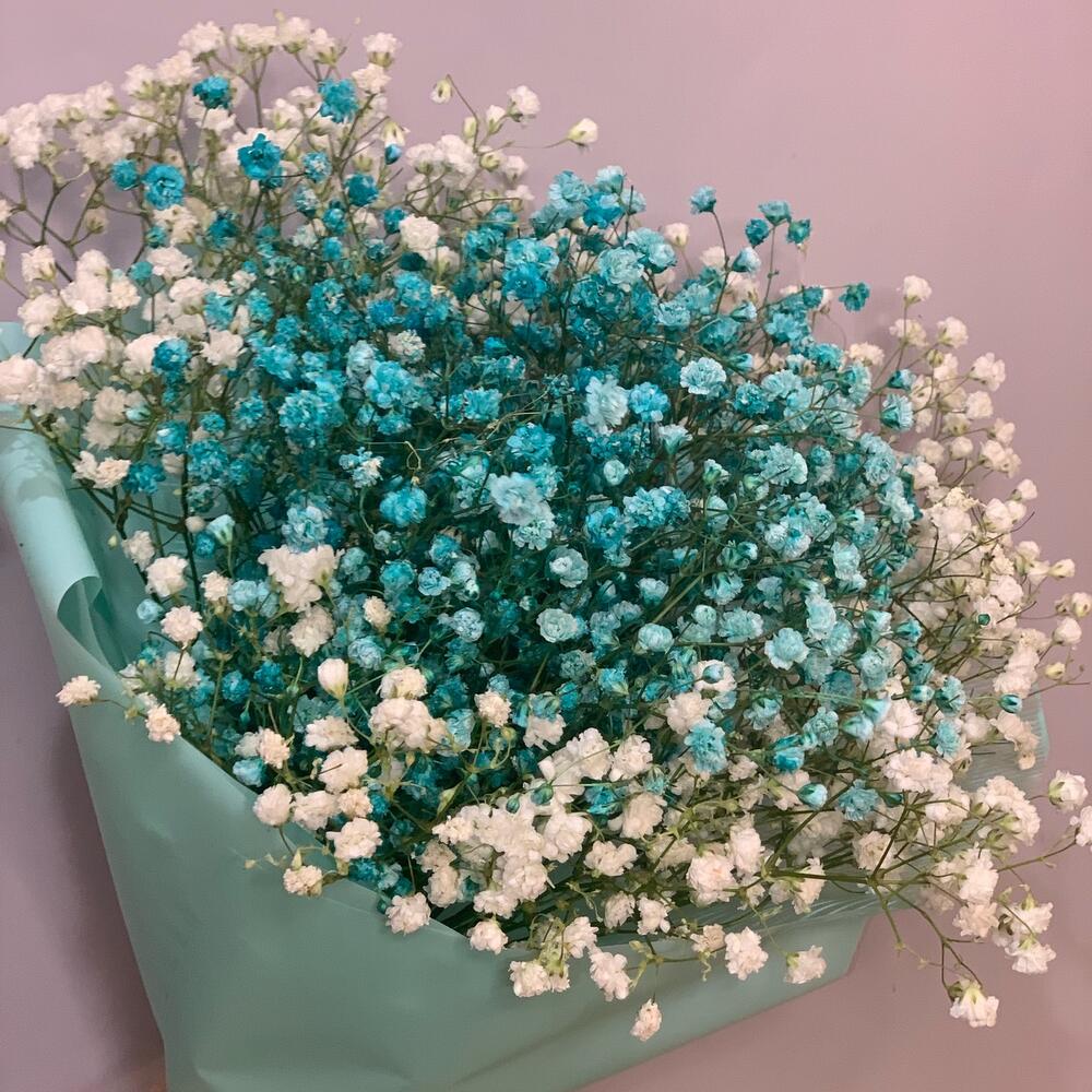 Гипсофила – 7 шт.Атласная лента – 1 шт.Дизайнерская упаковка – 1 шт.