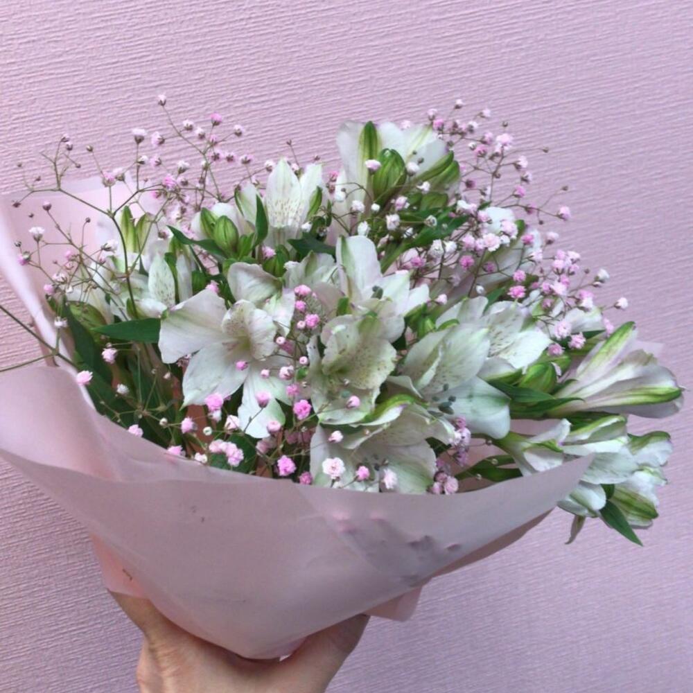 Альстромерия – 5 шт.Гипсофила – 2 шт.Лента – 1 шт.Упаковка дизайнерская – 1 шт.