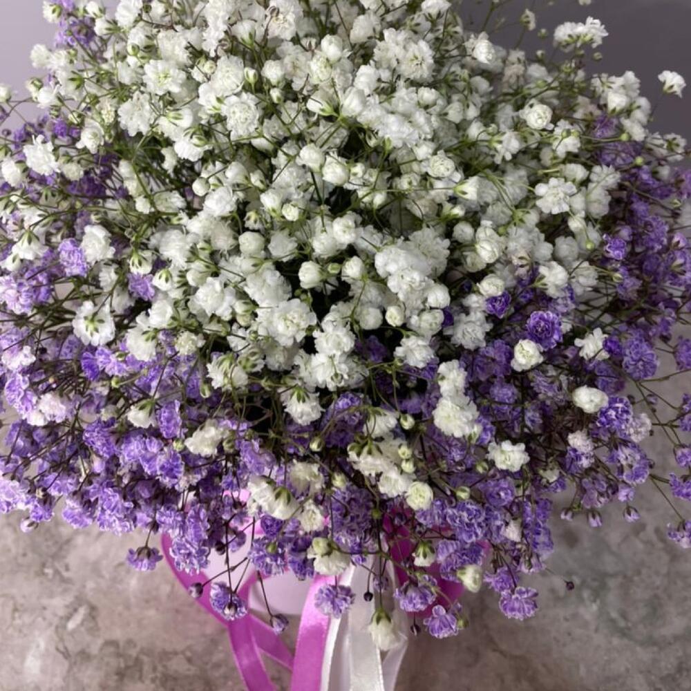 Гипсофила – 6 шт.Шляпная коробка с лентами – 1 шт.Флористическая губка (оазис) – 1 шт.