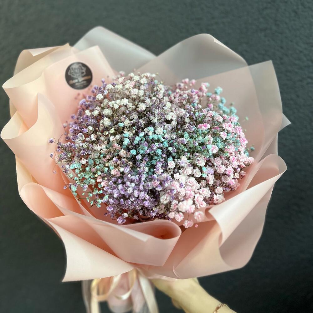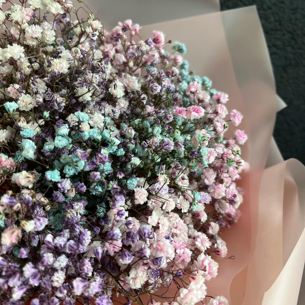 Моно букет из разноцветных гипсофил