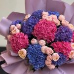 Букет из гортензии и розовых пионовидных роз