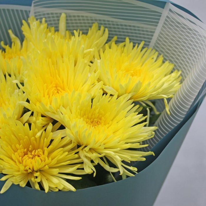 Букет из 7 желтых хризантем Анастасия в стильной упаковке