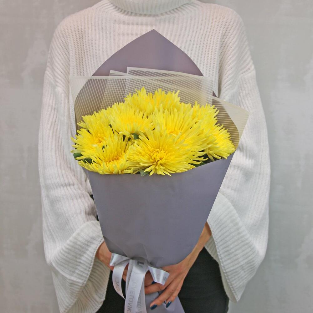 Букет из 9 желтых хризантем Анастасия в стильной упаковке