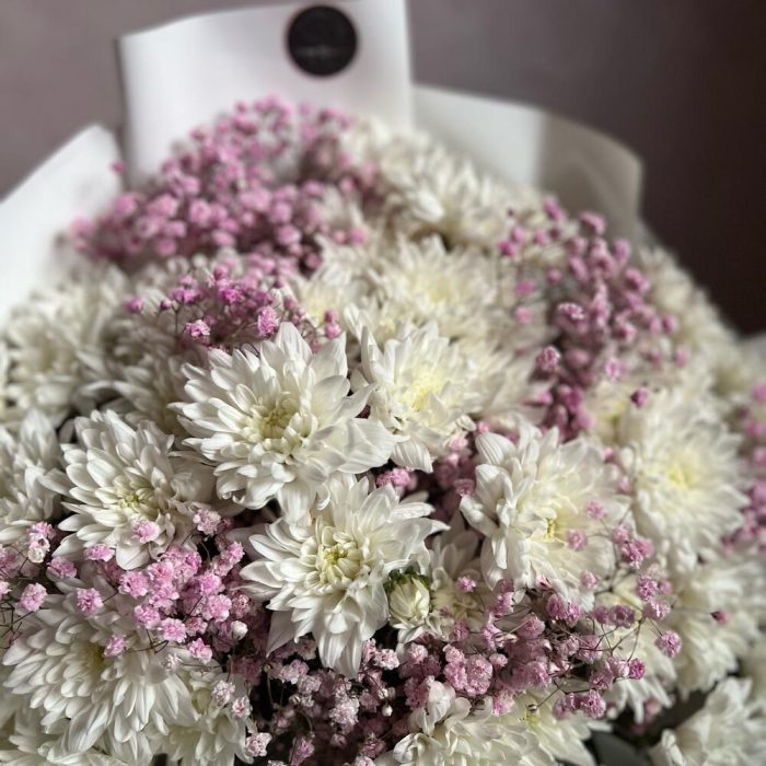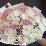 Букет из кустовой хризантемы и гипсофилы