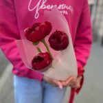 Упаковка дизайнерская – 1 шт.пионы бордовые – 3 шт.