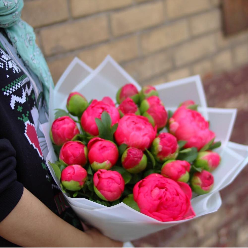 Пион Коралл Шарм (Coral Charm) – 21 шт.Упаковка дизайнерская – 1 шт.Лента атласная – 1 шт.