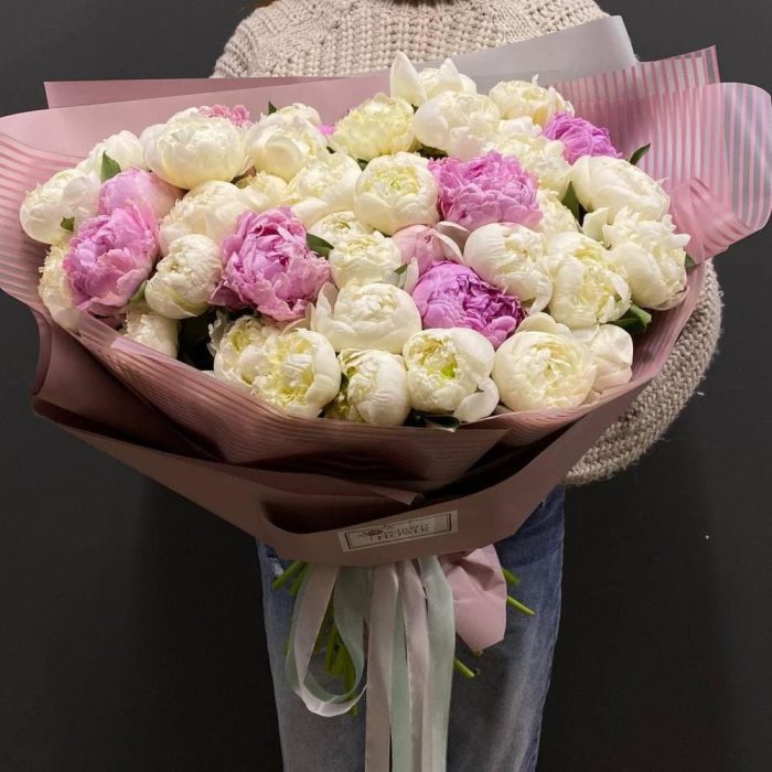 Букет из 45 пионов в стильной упаковке