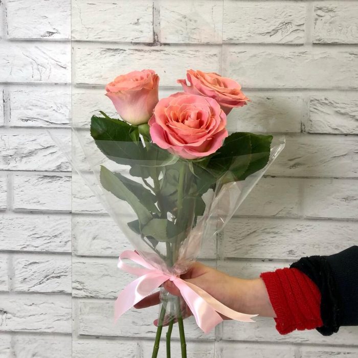 3 розы в упаковке