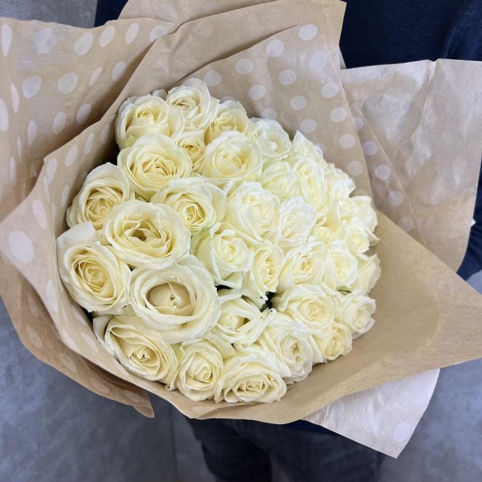 Роза – 31 шт.Упаковка – 3 шт.Атласная лента – 1 шт.