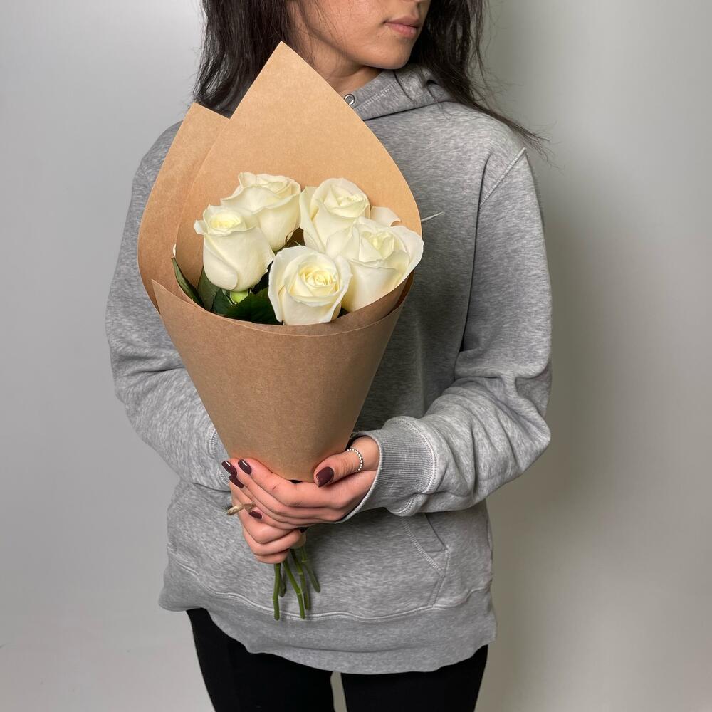 Крафт – 1 шт.Белая роза 50 см – 5 шт.