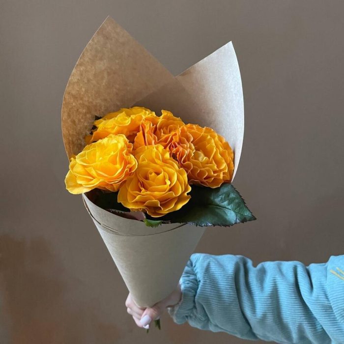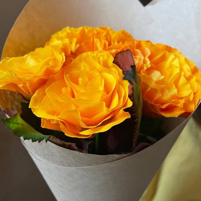 Крафтовая упаковка – 1 шт.роза оранжевая россия – 5 шт.