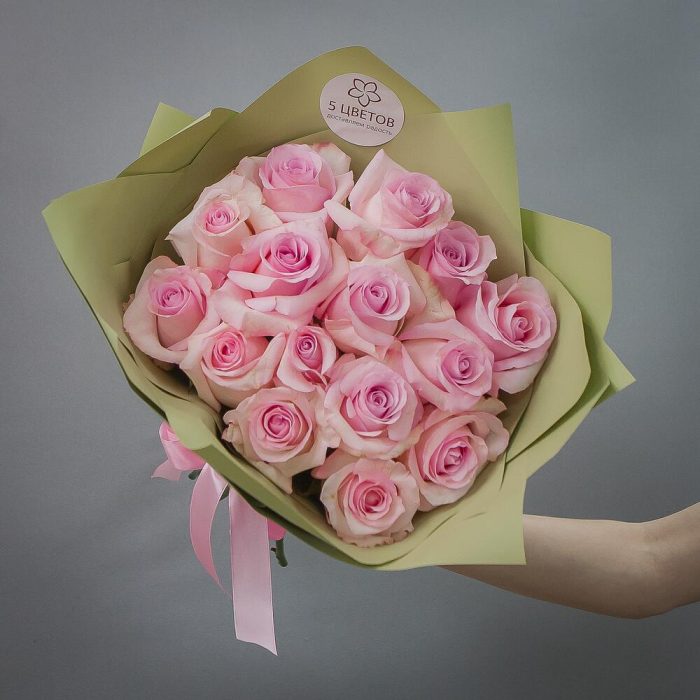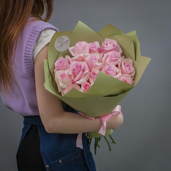 Букет из 15 розовых роз «Pink Mondial