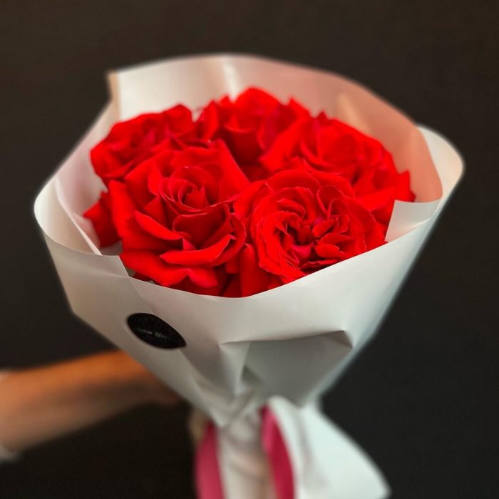 декоративная упаковка – 1 шт.Атласная лента – 1 шт.Роза Нина – 5 шт.