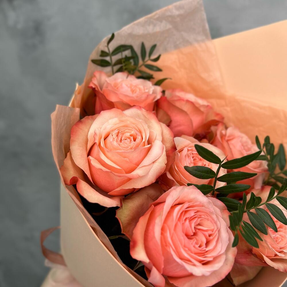 кахала роза – 7 шт.Фисташка – 3 шт.Упаковка дизайнерская – 2 шт.Лента атласная – 2 шт.