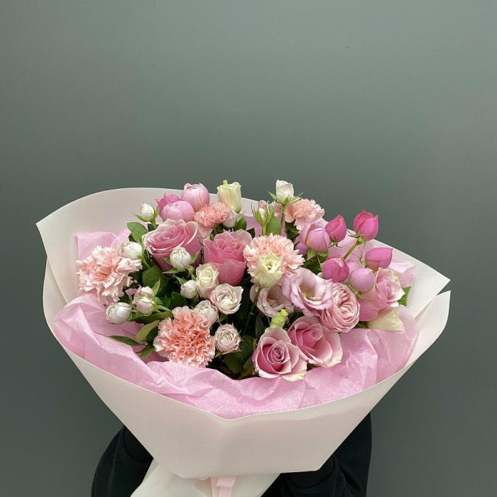 Гвоздики, Кустовые розы, Лизиантусы, Пионовидные розы, Розы