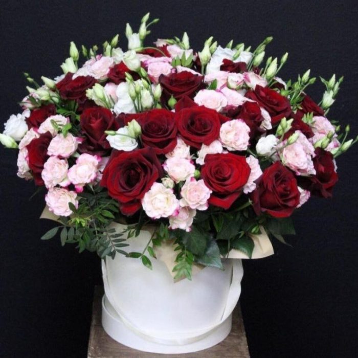 Альстромерии, Гвоздики, Кустовые розы, Лизиантусы, Розы, Хризантемы