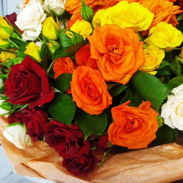 роза кустовая микс – 39 шт.Дизайнерская упаковка – 3 шт.